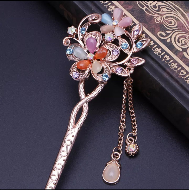 Copy of Elegant Charm Double Flowers Bobby Pin Mixed Color Hairpin Rhinestone Hair Stick NEW SALE